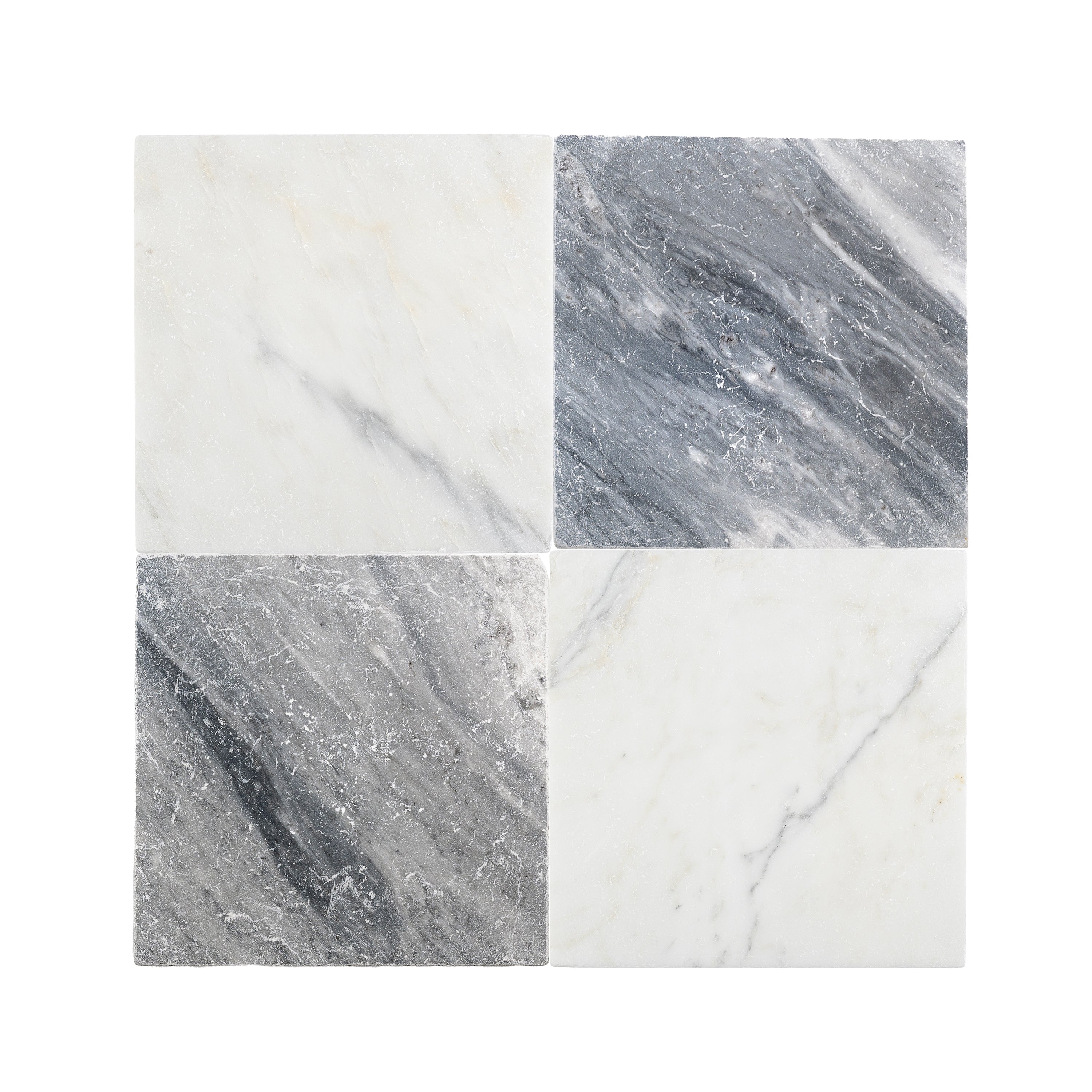 Bardiglio Grey Light & Casablanca Carrara 12x12 | Tumbled - Checkerboard Bundle